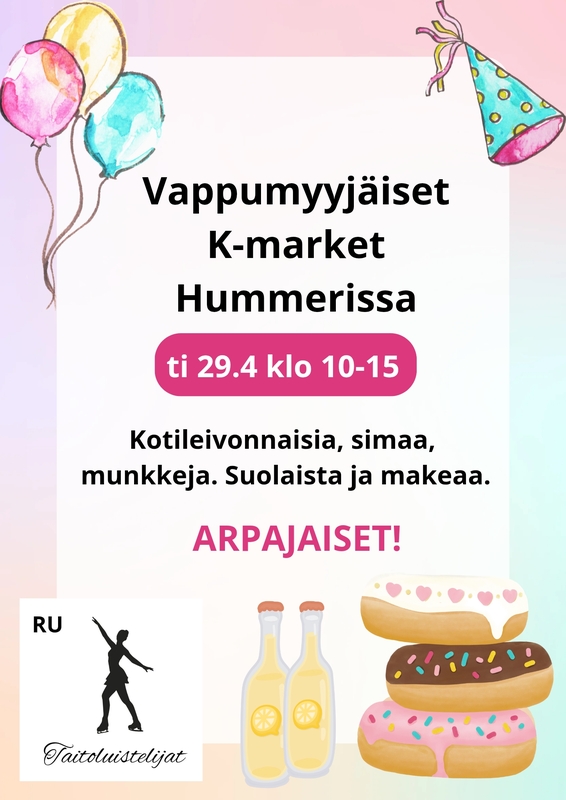 Rantasalmen Taitoluistelijoiden vappumyyjäiset K-market Hummerissa ti 29.4 klo 10-15