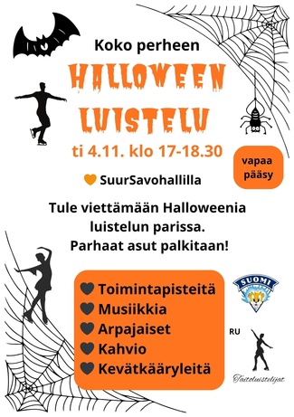 - Koko perheen Halloween luistelu ti 4.11 klo 17-18.30 SuurSavohallilla. Vapaa pääsy.